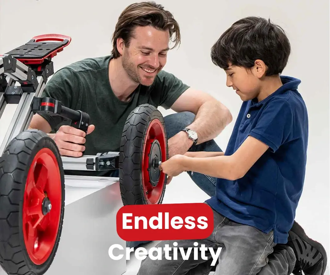 Erlebe das Nonplusultra an Kreativität und Abenteuer! Vom Laufrad bis zum Scooter, vom Go-Kart bis zum Elektro-Quad – dieses Kit bietet eine unvergleichliche Vielfalt für Familien, die gemeinsam bauen, forschen und gestalten wollen.