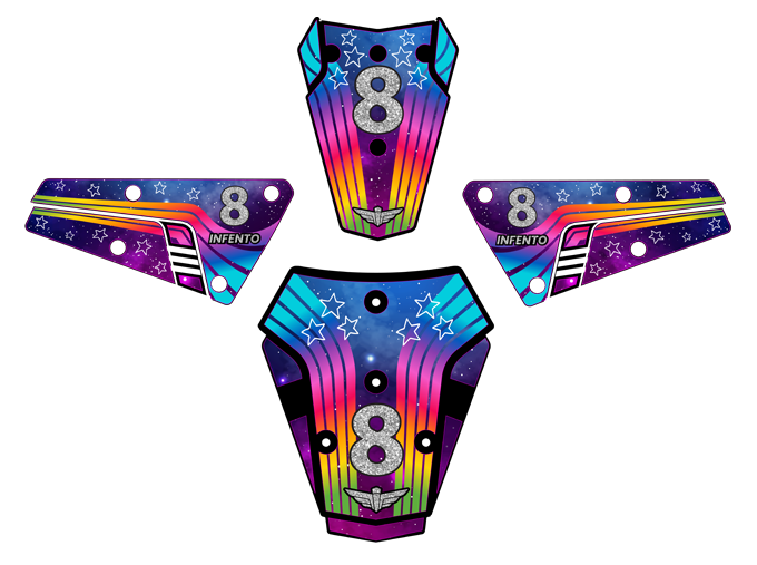 ¡Upgrades tu ride con elegantes carenados! Incluye cuatro carenados y dos juegos de pegatinas -Racing y Galaxia- ¡para una personalización infinita y aventuras épicas!