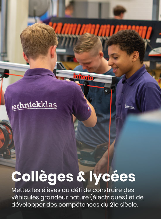 Nos Kits modulaires rendent les STEM irrésistibles pour les filles comme pour les garçons en leur permettant de concevoir, construire et conduire leurs propres véhicules grandeur nature ! Demandez aux élèves ce qu’ils pensent d’Infento, et la réponse est toujours la même : « C’est vraiment le projet le plus cool de tous les temps ! »