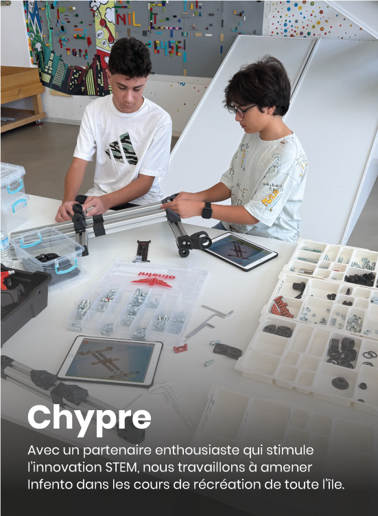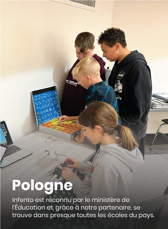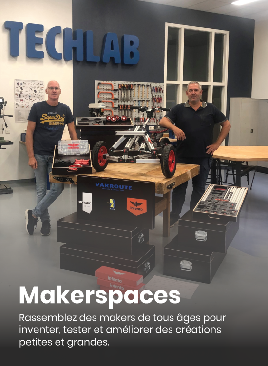 Que vous enseigniez à de jeunes élèves, à des adolescents, ou que vous dirigiez un fablab ou un camp d’été, Infento s’adapte facilement à vos objectifs et transforme tout espace en lieu d’apprentissage pratique.