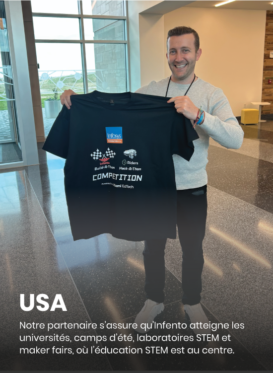 Infento a gagné la confiance de nombreux partenaires qui consacrent tout leur temps et leur énergie à apporter les STEM dans les classes et projets du monde entier. Ensemble, nous travaillons vers le même objectif : enthousiasmer les élèves pour la technologie, leur faire développer des compétences d’avenir et renforcer leur confiance.