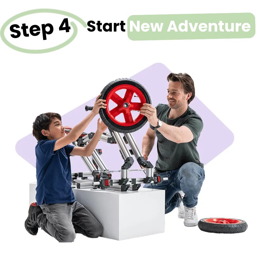 The Volt Kit brings real electric power to your creations. With 11 thrilling rides like E-Scooters and first electric bikes, your child gets to drive what they build and feel the magic of movement.